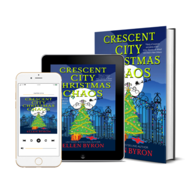Crescent City Christmas Chaos is the fourth book in author Ellen Byron’s intriguing New Orleans-set Vintage Cookbook Mystery series, and features vintage shop owner Miracle “Ricki” Fleur de Lis James-Diaz and her friends, family, and coworkers at the city’s beautiful Bon Vee Culinary House Museum. Ricki has established a unique and successful small business that she loves and has embarked on a lovely new romance with celebrity chef and neighbor Virgil Morel. Their relationship is still in the early stages, and Ricki is quite taken with Virgil’s innate goodness, especially after her past romantic experiences. They really fit well as a couple, as do her adoptive parents, Josepha and Luis James-Diaz, who met, married, and relocated to Los Angeles when Ricki was small.